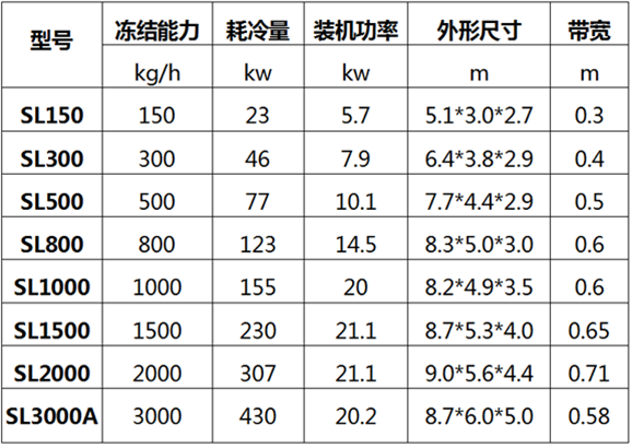 主要適用海產類、肉類產品、家禽產品、面點、調理食品、蔬菜、水果以及乳制品、冰激凌等食品的快速凍結。